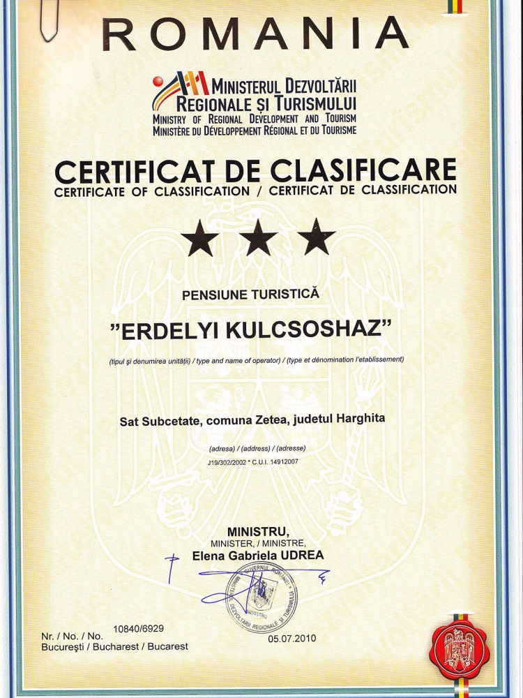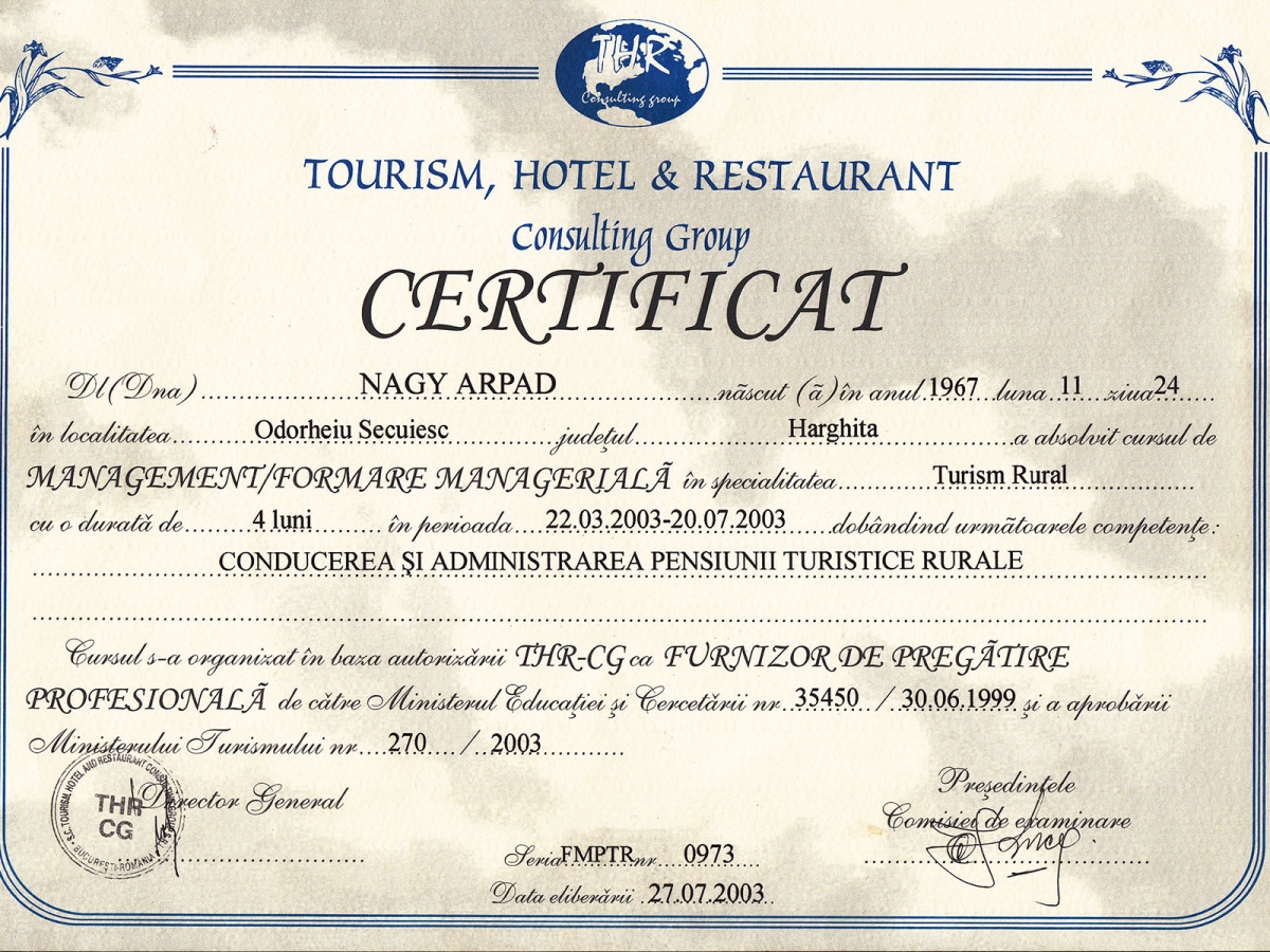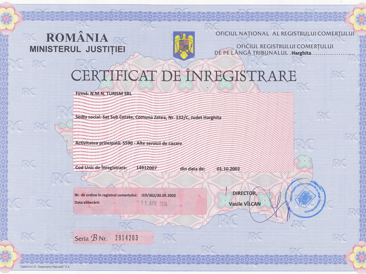 Levelezési cím: SC N.M.N. Turism Srl (Nagy Arpad), 535600 Odorheiu Secuiesc, Lacatusilor 5/10, Harghita