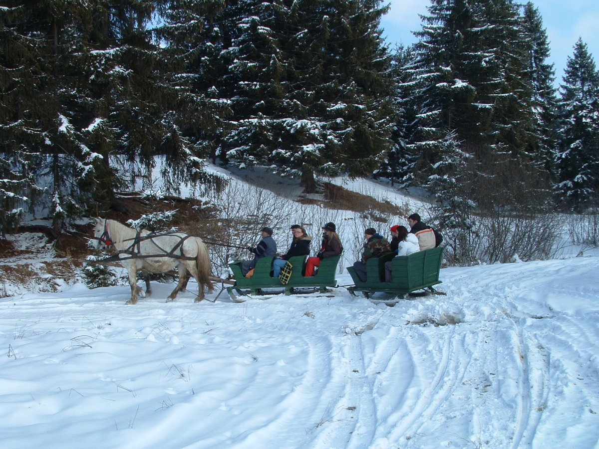 Lovas szánozás a Hargitán! Felejthetetlen élményben lehet részük, amennyiben egy a csengős lovas szánozás mellett döntenek. A halkan suhanó szán, és a lovak patáinak csattogása a hólepte tiszta fehér tájon a kikapcsolódásuk záloga. Csendes varázslat keríti hatalmába a jól betakart utasokat, miközben a lovas szán fut velük a hargitai téli táj érintetlen útjain. A jó hangulatért a forraltbor a felelős! Nagy Lak vendégház 7 éjszakás helyfoglalása esetén a lovasszán programunk ingyenesen igényelhető!